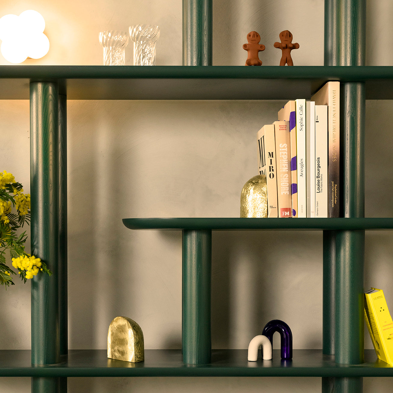 Blanc Coquille, Ocre Jaune, Rose Calcaire, Noir Profond, Bleu Azuré et Vert Pinède, Chêne Naturel et Frêne Foncé.