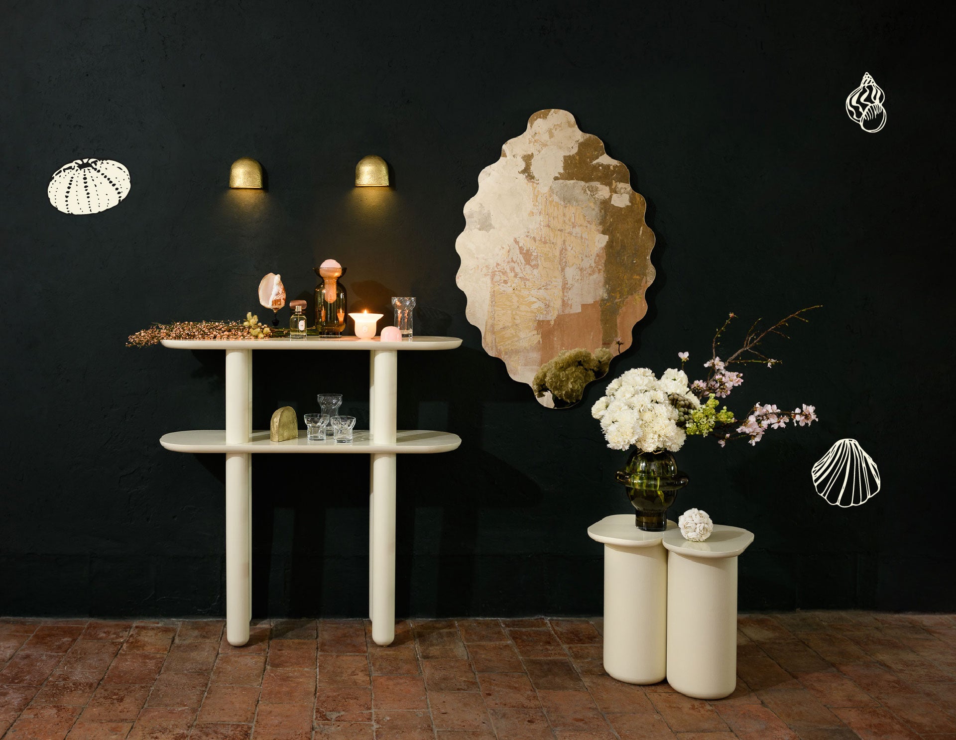 Our furniture collection is adorned in its new Blanc Coquille dress. The iconic Enzo vase