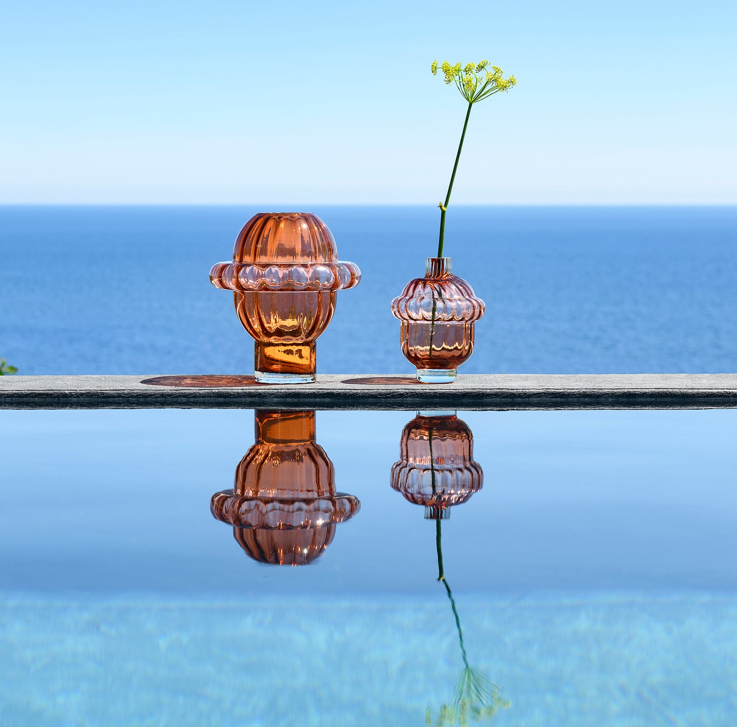 This hand-blown glass vase from a family-run Portuguese factory seems to have been inflated like a buoy. Its slightly undulating, transparent surface echoes the movement of waves, random and repetitive at the same time.