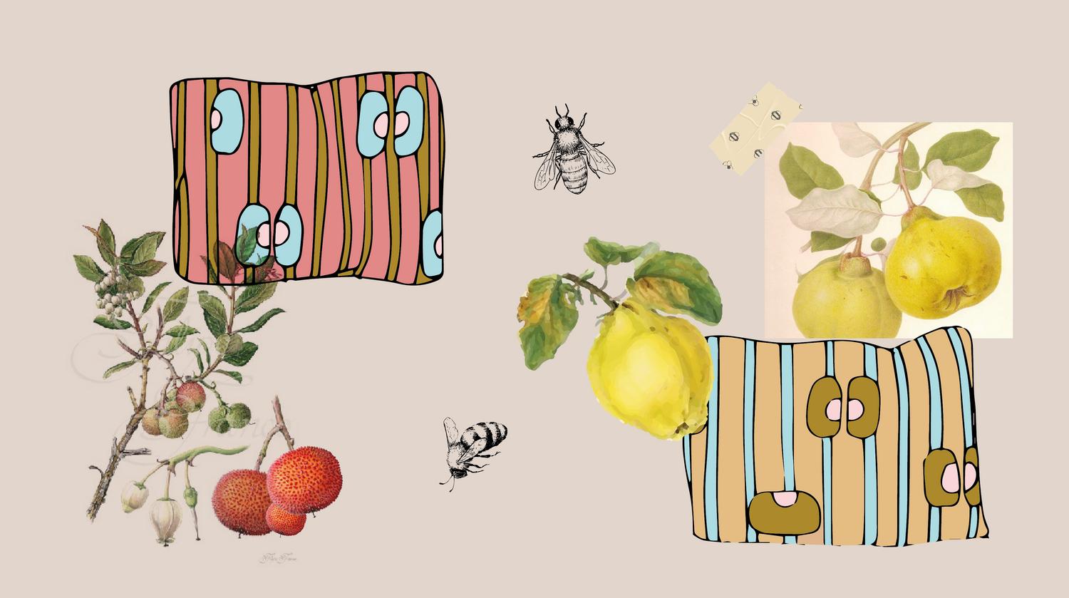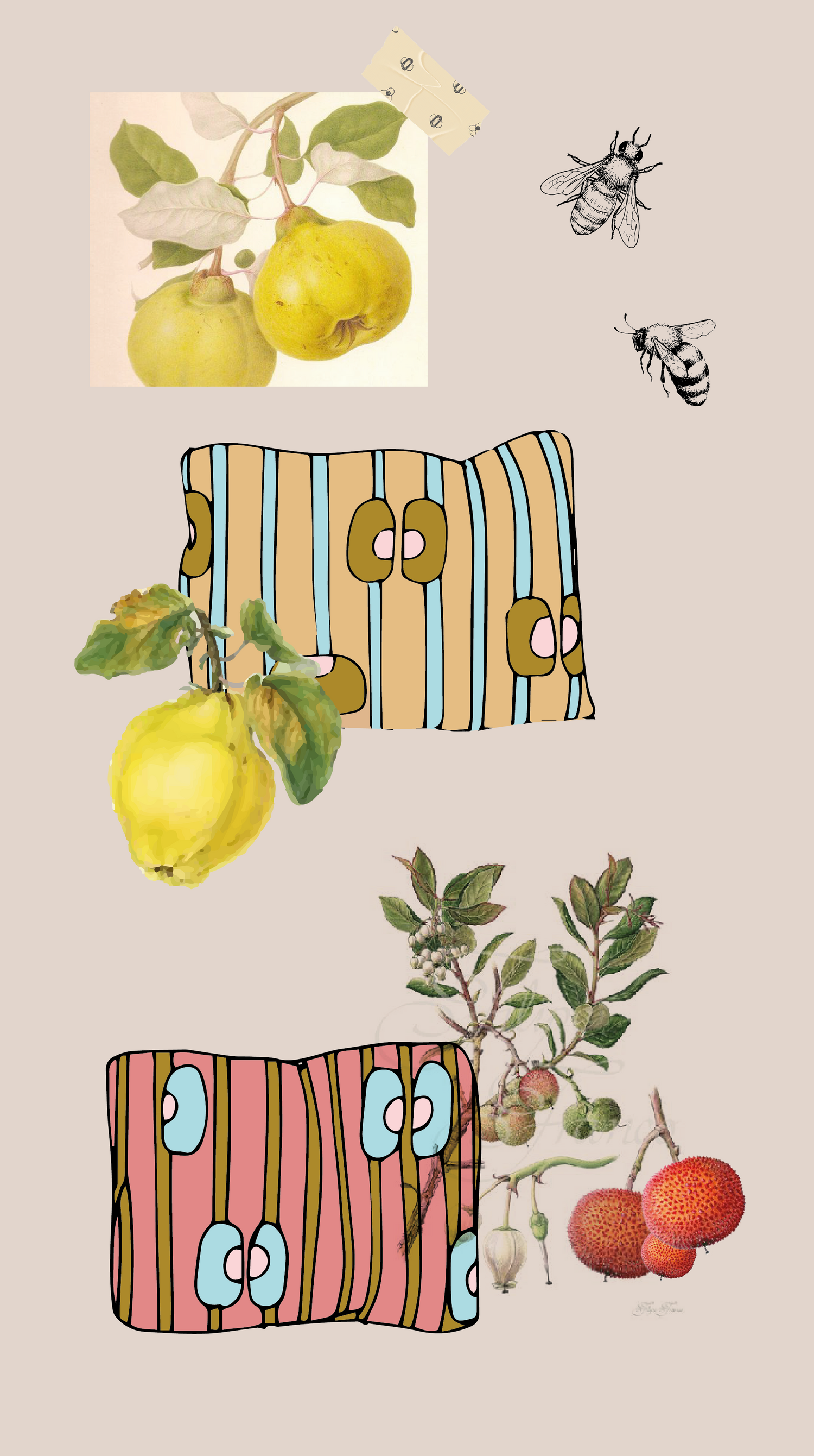 -Poutou Coing ( Jaune Coing, Bleu Ciel, Ocre Jaune, Rose Calcaire)