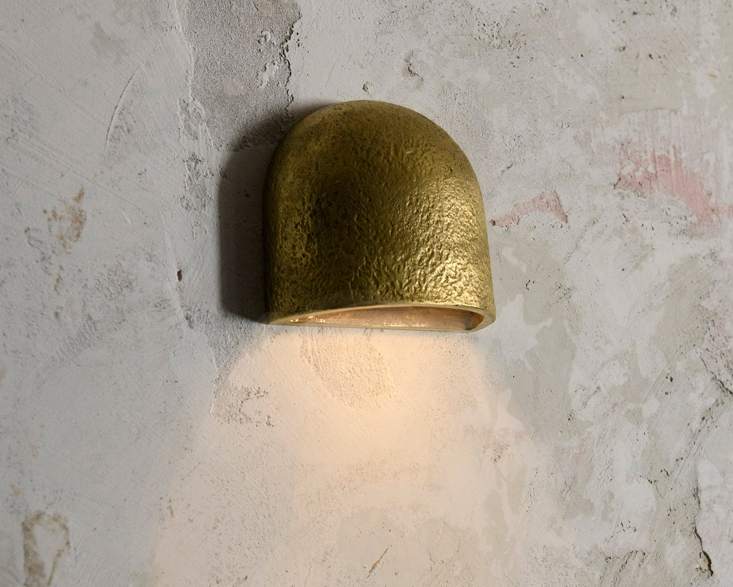 Roucaou is an art bronze wall light. Adoring the wall like a precious gem,Roucaou casts an elegant, sculpted light. Its rugged, golden finish evokes theMediterranean coastline, as if it was a shell plucked out of a calanque.