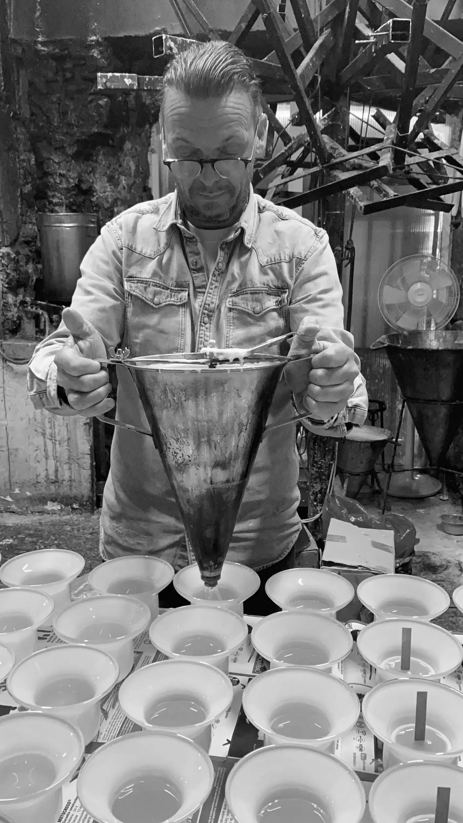 Our candles are made by Sylvain, a master candle-maker on the Côte d'Azur since the age of 14. He is a true enthusiast. His factory, created 40 years ago by his father-in-law, is located in a place steeped in history, an old oil mill in the medieval village of Auribeau, dating back to the 13th century.