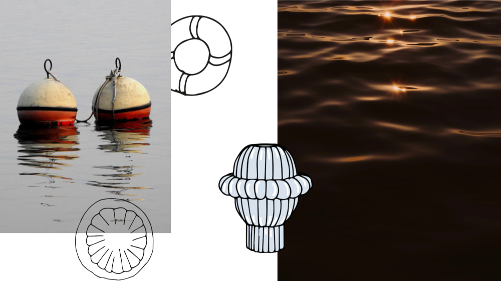 Ce vase en verre soufflé à la bouche dans une manufacture portugaise familiale semble avoir été gonflé comme une bouée. Sa surface légèrement ondulée et transparente renvoie au mouvement des vagues, aléatoire et répétitif en même temps. Une texture mirage, telle l'épaisseur de la mer qui diffracte l'abysse.